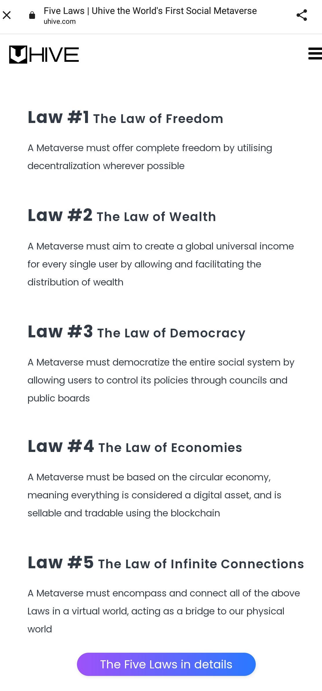 Social app UHive states this new ethos with decentralization in something they call 'Five Laws of the Metaverse' (shown in the picture). Radically disruptive.